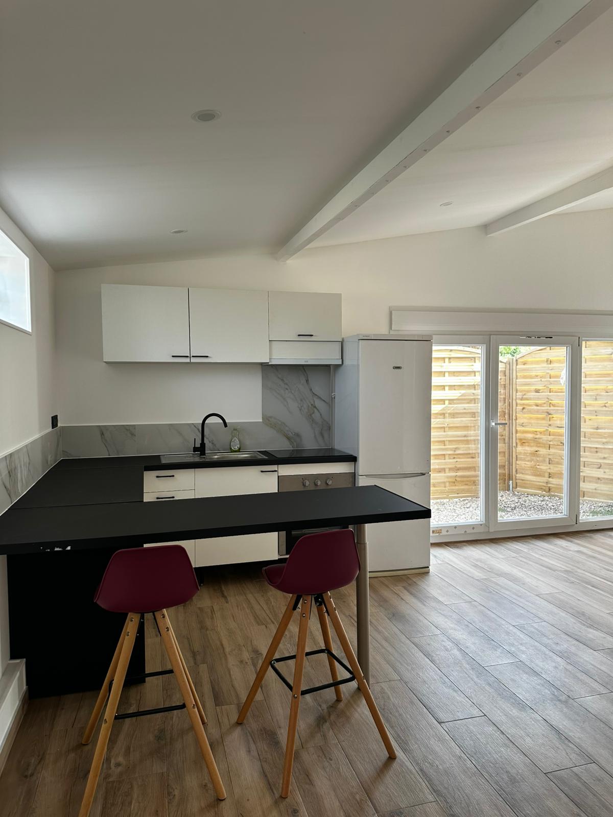 Une pièce de vie spacieuse et lumineuse de 24,43 m² avec cuisine américaine, aménagée et entièrement équipée